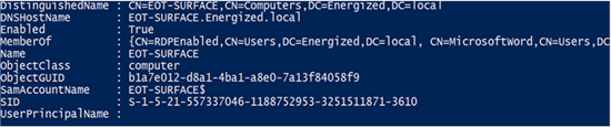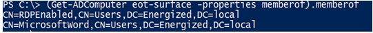 (GET-ADComputer EOT-SURFACE –properties memberof).memberof