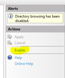 Once you get into Directory browsing module on the right you will find the Alerts (Action Pane) as in Figure 2.