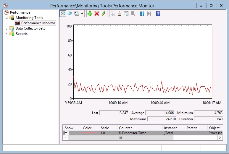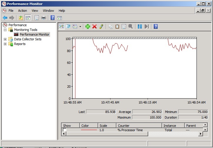 Here is how things look in the Performance Monitor: